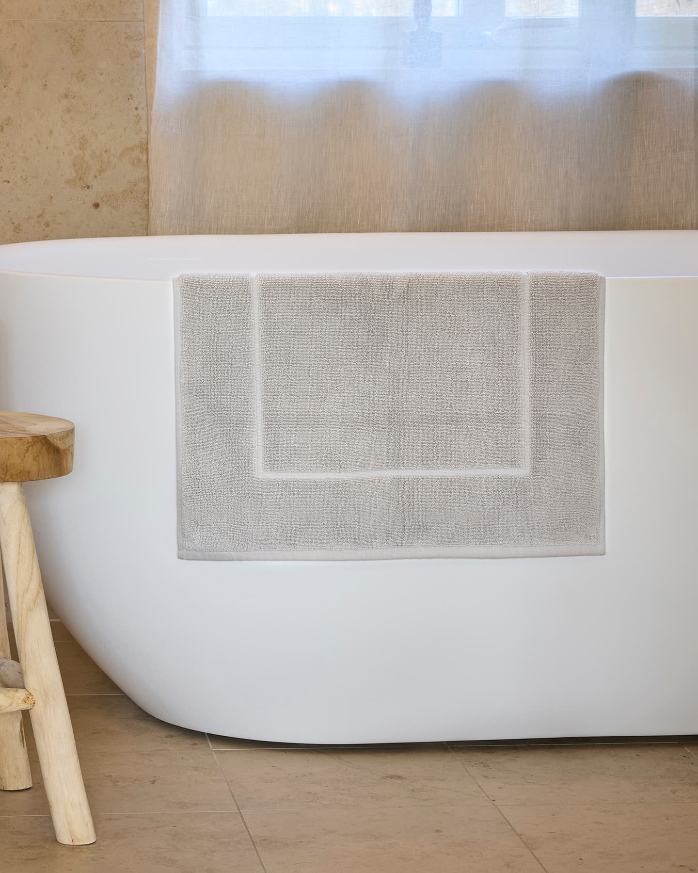 Thick and absorbent bath mat made of organic cotton terry in a premium 1200 GSM weight. Timeless design with a simple border that looks stylish in any bathroom. Available in two sizes.