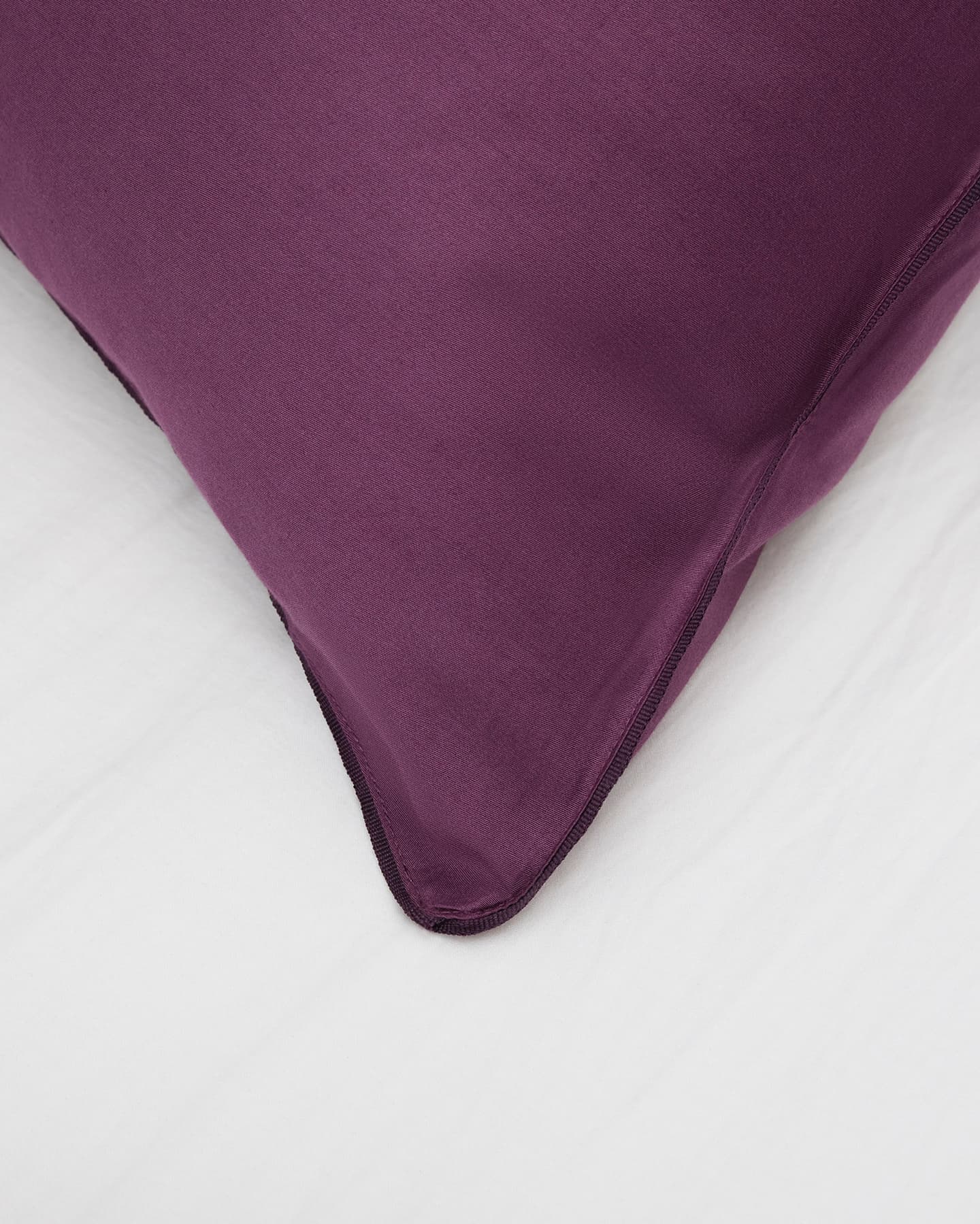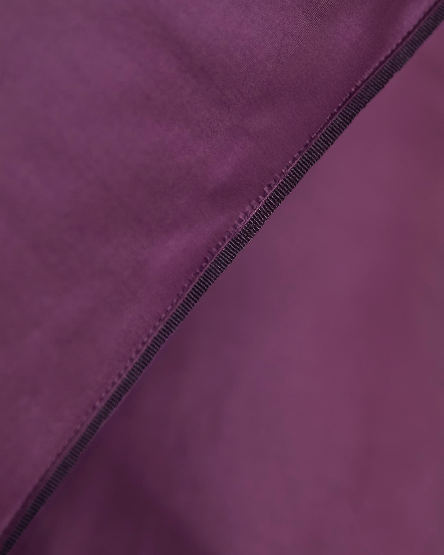 Strimma has a discrete, dark purple piping on pillowcase, hand sewn by experienced sewers. The piping is made from recycled polyester.