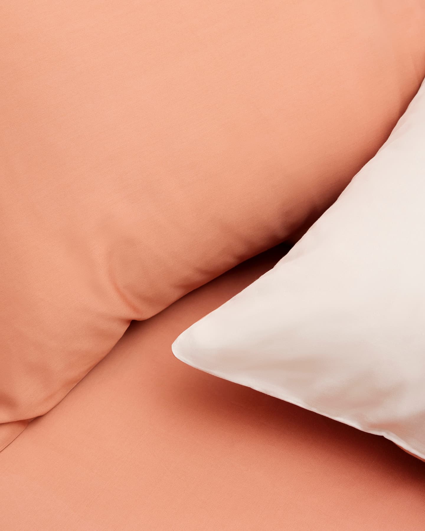 Tvenne has a two-tone design where you choose which color to highlight. In this colorway we have combined the colors Pink Terracotta and Seashell Beige. The satin fabric creates a soft and supple feel with a beautiful sheen