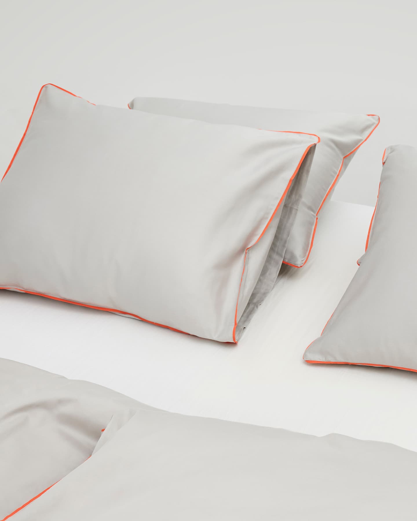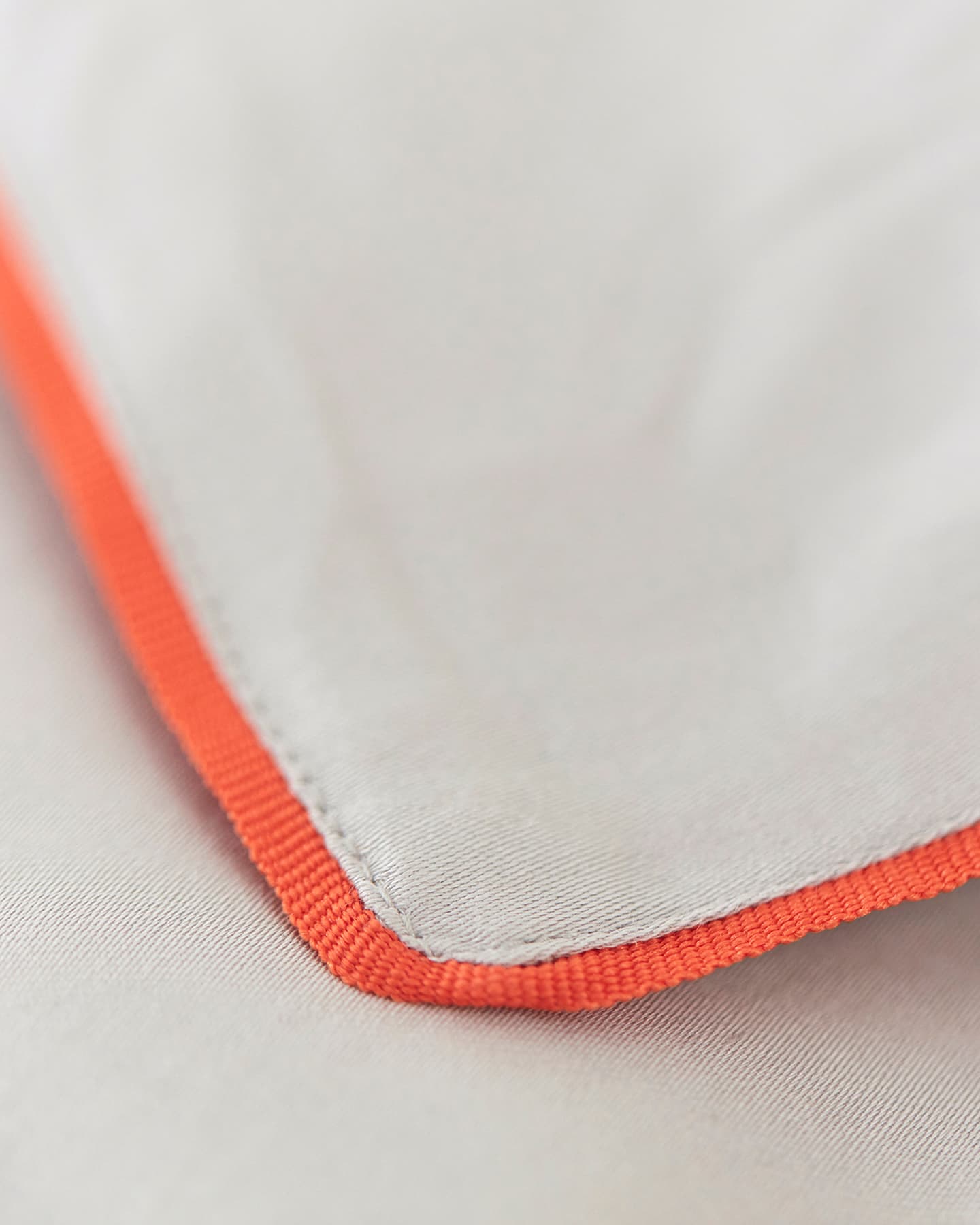 Strimma has an orange piping around the perimeter, hand sewn by experienced sewers. The piping is made from recycled polyester.